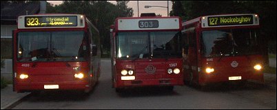 4520, 1367 och 4545 vid Brommaplan. Foto: Monica Johansson.